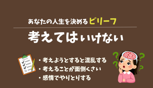 考えてはいけないビリーフがあると、文字通り、「考えられない」「考えることが苦手」となりやすいです。